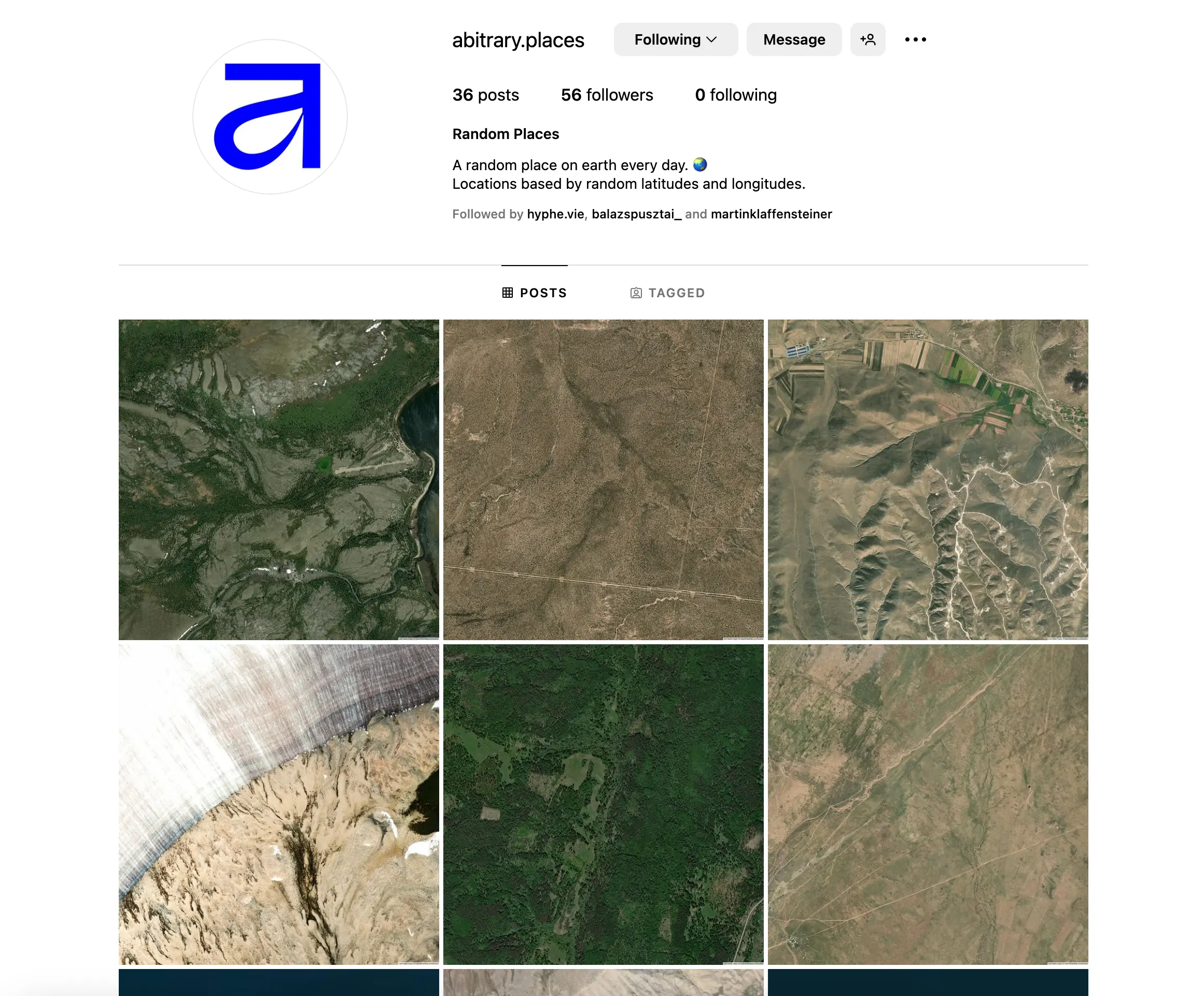 Embark on a spontaneous journey with my website that generates random latitude and longitude coordinates, allowing you to virtually visit arbitrary places worldwide. Leveraging Street View and Maps data whenever possible, this project transforms the act of exploration into a delightful surprise. Don't miss the Instagram counterpart, 'Arbitrary Places,' where I share captivating snapshots from these unexpected virtual adventures.